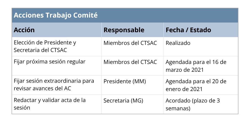 4. Análisis de la Sesión Ordinaria del CTSAC (16 de diciembre de 2020)